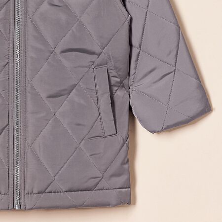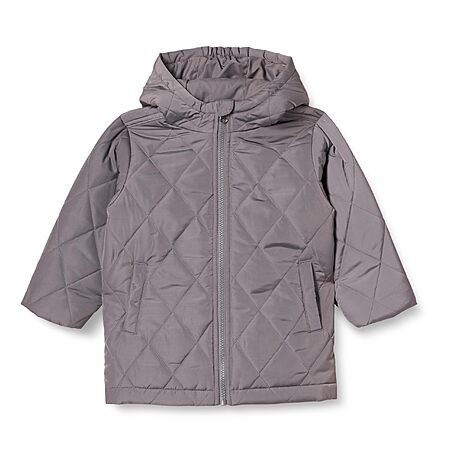 Amazon Essentials Unisex Kids' Long Quilted Jacket, Grey, Medium