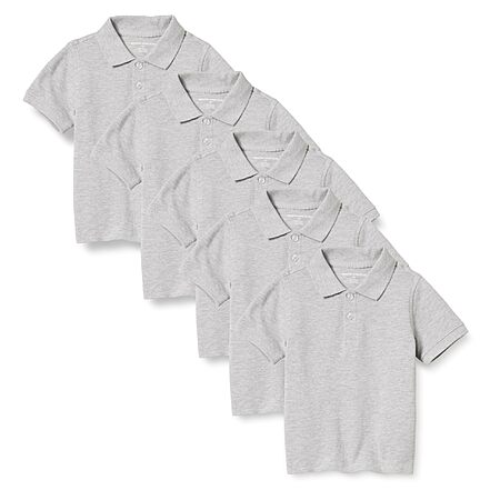 Amazon Essentials Boys' Uniform Short-Sleeve Pique Polo Shirts, 5-Pack Heather Grey, 3T