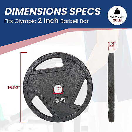 BalanceFrom 2" Cast Iron 45lb Bar Plate Single Pack - Gray Rust-Resistant Coating, 3 Grip Holes *Thin Profile* $35 @ Walmart