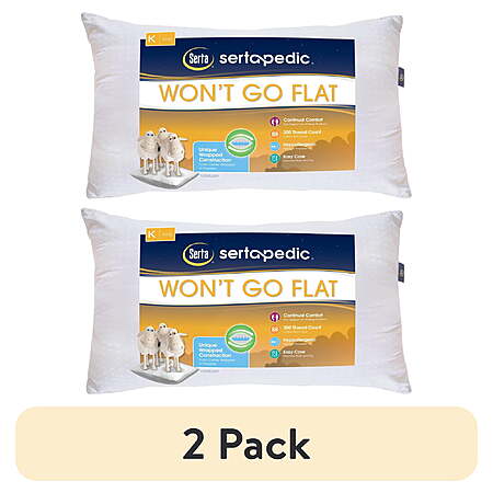2-Count Sertapedic by Serta Pillows (King): Won't Go Flat $13.44 ($6.72 each) or Cool Nites $16.88 ($8.44 each) + Free S&H w/ Walmart+ or on $35+