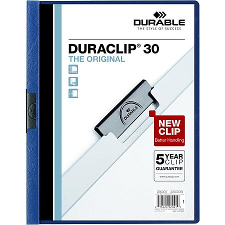 CASE OF 25 Durable DuraClip Report Cover Clip Fastener Clear/Dark Blue 30-Sheet - 8.5" x 11" - $16.42! FREE Shipping w/ Target Circle