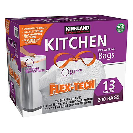 Select Stores: 200-Ct 13-Gal Kirkland Signature Flex-Tech Kitchen Trash Bags