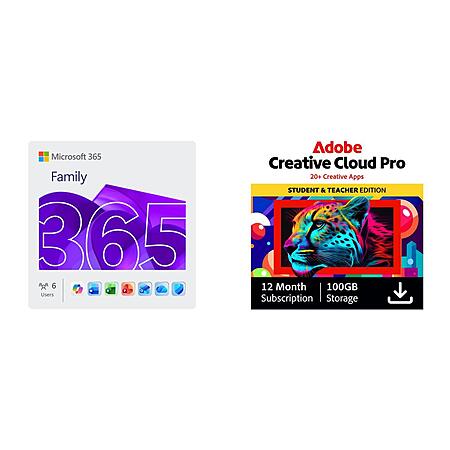 Microsoft 365 Family and Adobe Creative Cloud Pro - Student & Teacher 12-month Bundle - $238.98