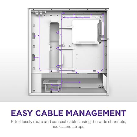 Model: NZXT H5 Flow 2024 - Compact ATX Mid-Tower PC Gaming Case - High Airflow - 2 x 120mm Fans Included - 360mm Front & 240mm Top Radiator Support - Cable Management System - Tempered Glass - White