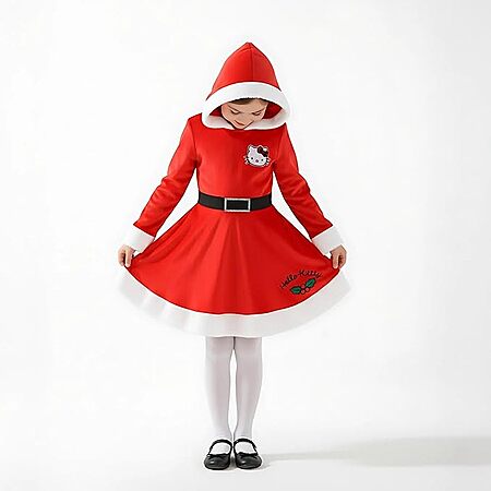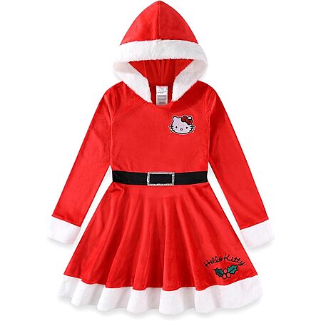 Hello Kitty Sanrio Girls Christmas Holiday Long Sleeve Hooded Santa Dress for Big Kids Red $9.99. Size 4 - 12