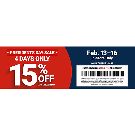 Harbor Freight President's day sale, 15% off any item coupon, Feb 13-16, in-store