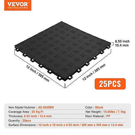 25-Pack VEVOR 12" x 12" Textured Non-Slip Garage Floor Tiles $31 @ Amazon