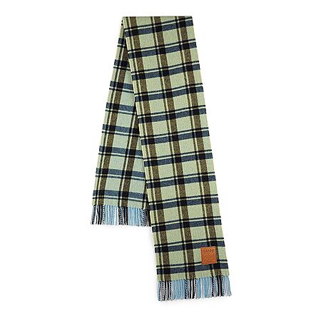 Ganni, Double Face Check Wool Scarf, Yellow Pear, $129