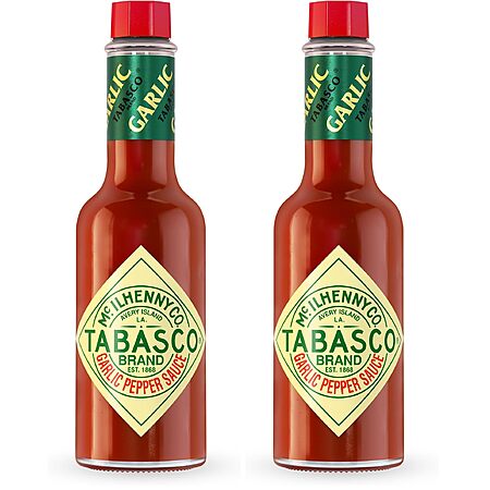 TABASCO Brand Cayenne Garlic Pepper Sauce, Mild Hot Sauce, Glass Bottle, Smoky & Zesty Blend with Savory Garlic, Bold Flavor 2 Fl Oz (Pack of 2)~$4.98 @ Amazon