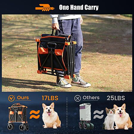 EchoSmile Collapsible Folding Wagon Cart 360lbs, Heavy Duty Garden Utility Cart with All Terrain Wheels, (Black Orange) - amazon $30