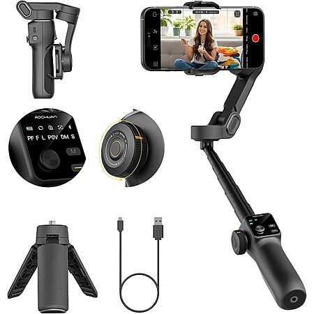 AOCHUAN V8 3-Axis Gimbal Stabilizer w/ 7.8" Extension Rod for Smartphone (Black)