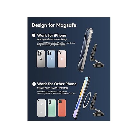 - Works for All Phones: Compatible with MagSafe and all phones with cases, includes 2 metal rings that won't interfere with wireless charging. Compatible with iPhone 8 and newer, Samsung Galaxy, LG, and more.