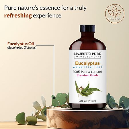 Majestic Pure Essential Oil with Glass Dropper - 100% Pure and Natural - Essential Oils for Diffuser, Eucalyptus Essential Oil, Eucalyptus Oil, 4 Fl Oz $8.49