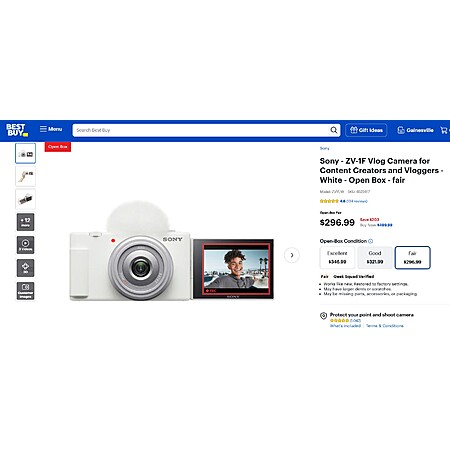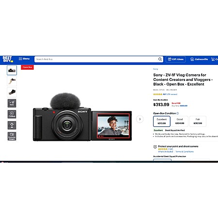 Sony - ZV-1F Vlog Camera for Content Creators and Vloggers - Black - Open Box - Excellent $314