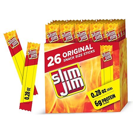 Slim Jim Smoked Meat Sticks, Original Flavor, 6g Protein Per Serving, Snack Size, Valentine's Day Gift, 0.28 oz. (26 Count) x 2 (52 Total)~$3.37 Each After Multibuy & S&S @ Amazon