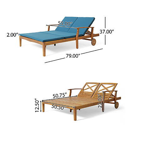 Noble House Perla Double Lounge for Yard and Patio in Teak with Blue Cushions - $204.79