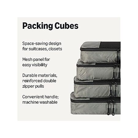 $6.99*:Amazon Essentials 4-Piece Packing Cubes (Slim, Gray) at Woot!
