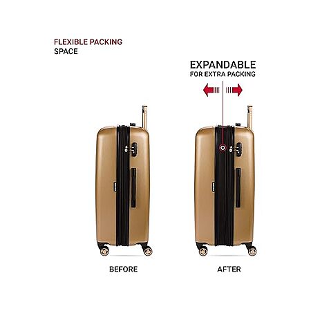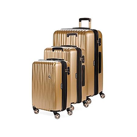 Woot! has SwissGear 7272 Energie Expandable Hardside Luggage with Spinner Wheels and TSA Lock, Gold, 3-Piece Set (19/24/27) on sale for $212.99.