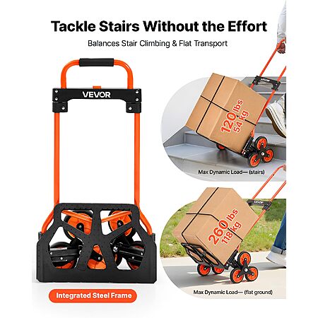 Amazon has 260-Lbs VEVOR Portable Stair Climbing Aluminum Trolley for $46. Shipping is free.