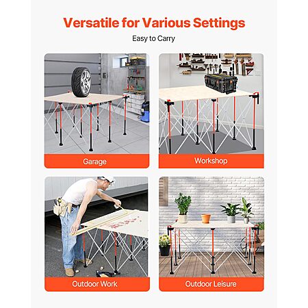Amazon.com has VEVOR Portable Folding Workstand, 4.15 x 4.15 ft Collapsible Workbench, 3500 lbs Weight Capacity, No Assembly Foldable Work Stand with Storage Bag, Table Top NOT Included, for Garage Workshop Outdoor on sale for $72.9. Shipping is Free.