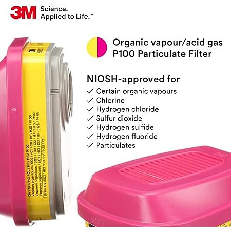 Amazon[amazon.com] has 1-Pair 3M P100 Vapor, Gases, Particulates Respirator Cartridge Filters (60923) for $10.98 - 5% when you check out via Subscribe & Save = $10.43. Shipping is free with Prime or on $35+ orders.