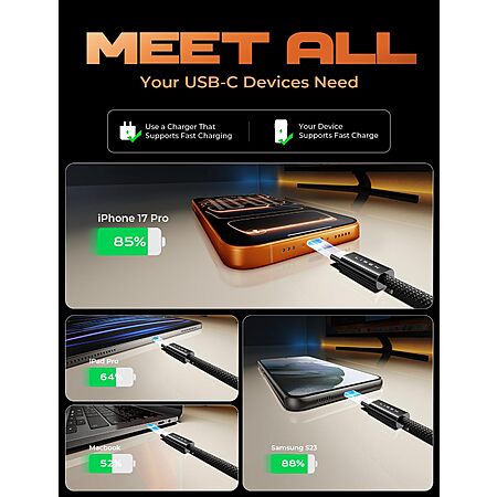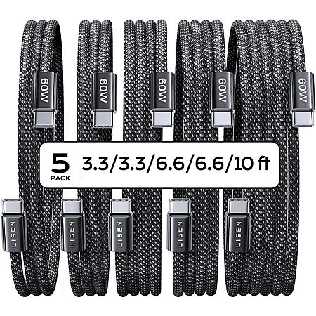 5-Pack LISEN 60W USB-C Charging Cables (2x 3.3', 2x 6.6' + 10', Black) $7.88 + Free Shipping w/ Prime or on $35+