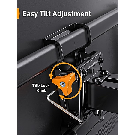 - Solid and Sturdy: Made of heavy-duty steel and dual articulating arms that are 30% thicker, this TV wall mount is UL certified for its performance, durability, and safety, and can easily hold up to 132 lbs. The tv wall mount bracket is equipped with security locks and anti-drop end caps for dependable security.