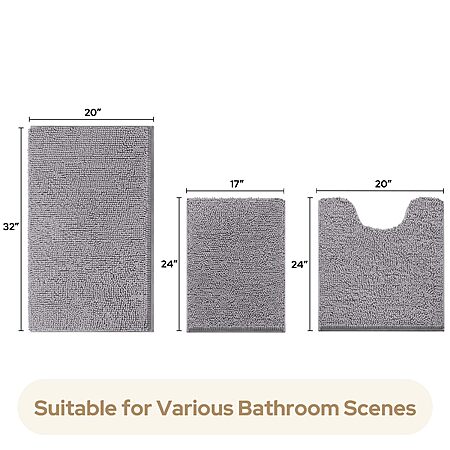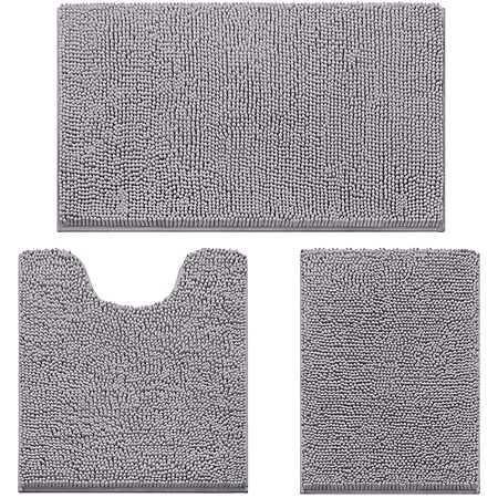 HOMEIDEAS 3 Pieces Bathroom Rugs, Soft Thick Absorbent Chenille Bath Mats, Washable Non-Slip Floor Rugs for Shower & Bath, Grey $19.97