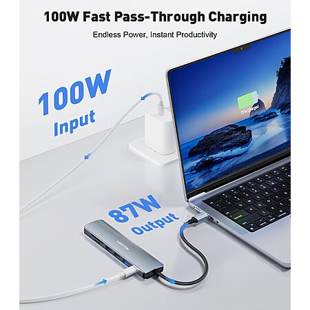 UANTIN USB C Hub 7 in 1 Multiport Adapter with 4K HDMI Dongle, 100W PD, SD/TF Card Reader, 3 USB-A, USBC Docking Station $8.99