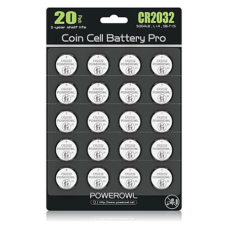 POWEROWL High Capacity CR2032 Battery (20-Pack) 3v Lithium Batteries, Leak-Free, Long Lasting Cr 2032 $6.98