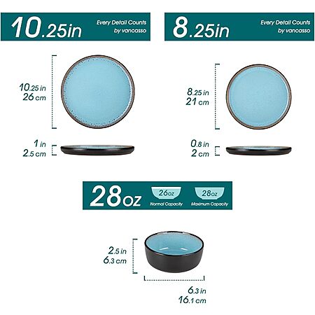 24-pc Service for 8 vancasso Stoneware Dinnerware Set (Sky Blue)