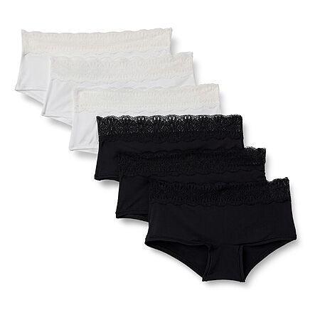 $4.93 to $5.64 for 6-Pack Amazon Essentials Womens Peached Microfiber with Lace Trim Boyshort Panties