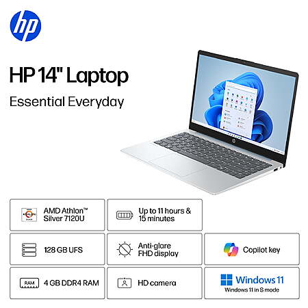 HP 14 inch HD Windows Laptop AMD Athlon 7120 4GB RAM 128GB UFS Moonlight Blue $139