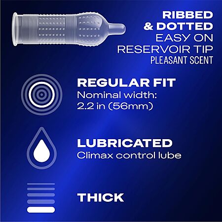 Condoms, Ultra Fine, Ribbed, Dotted with Delay Lubricant, Durex Performax Intense Natural Rubber Latex Condoms, 12-24 Count, $4.65-8.26 clip Q/SS