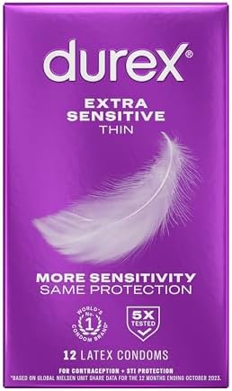 Durex Extra Sensitive Lubricated Ultra Thin Premium Condoms, Regular Fit, 12 Count $3 with Clip Q FS PRIME