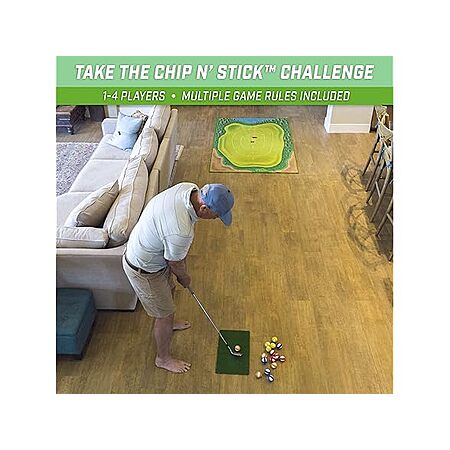 - CHIP N' STICK: Test your golf skills with a fun new chipping game that can be played by 1-4 players; Full set includes 1 Chip N' Stick game mat, 16 Balls (now sonically welded instead of glued) and 1 chipping mat