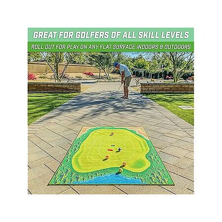- INDOOR OR OUTDOOR FUN: Roll out the 4 x 6 ft Chip N' Stick Mat on any flat surface for instant game setup; The premium woven construction is made to roll like a real putting green - easily roll out for set up and roll up for compact storage