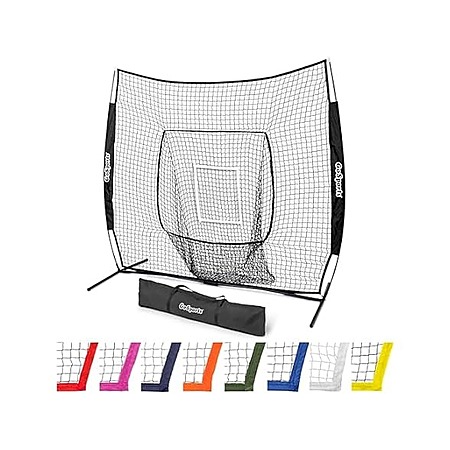 GoSports 7' x 7' Baseball / Softball Practice Hitting & Pitching Net w/ Strike Zone (Black) for