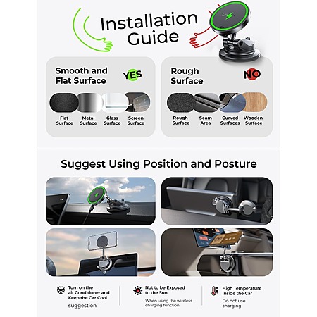 • 25W Qi2 MafSafe Suction Cup Charger Mount