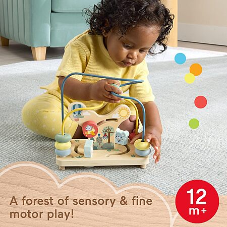 Fisher-Price Wood Toddler Toy Bead Maze (Woodland Animal Theme) for