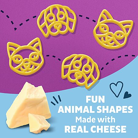 - Annie's Puppies and Kitties Pasta Shapes Macaroni and Cheese is made with cuddly animal-shaped organic pasta and real white cheddar cheese for a great-tasting version of everybunny's favorite comfort food that is packed with irresistible flavor.