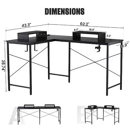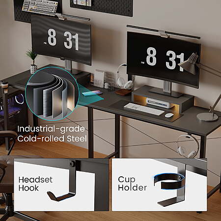 GTRACING L-Shaped Gaming Desk w/ RGB Lights & Removable Stands (Black) $56 + Free Shipping