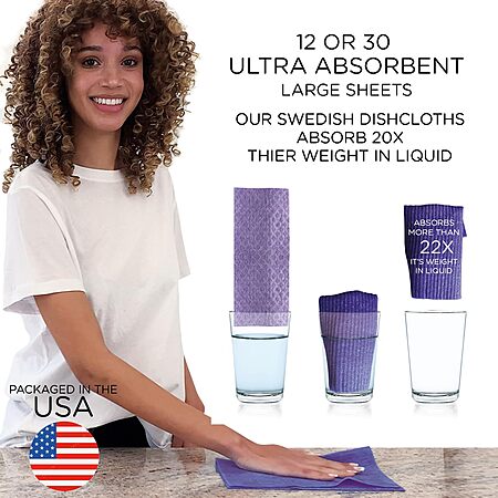 Swedish Dishcloths for Kitchen XL, 30 Sheet Roll, Biodegradable & Compostable, Reusable Paper Towel Cleaning Cloths, 11" x 10", No Odor, Washing Dishes, By LOLA $23.7