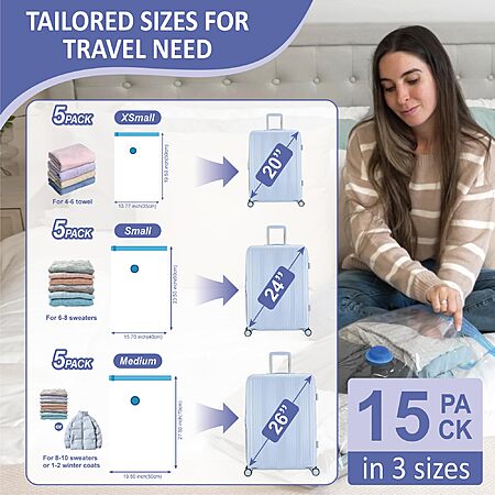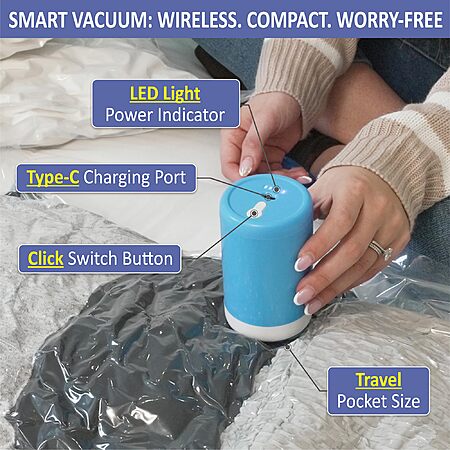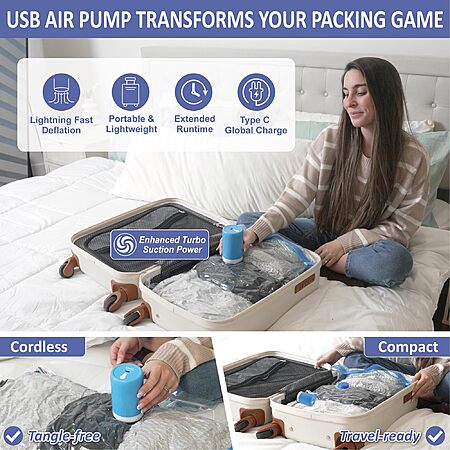 Cozy Essential 15 Pack Travel Vacuum Storage Bags with Rechargeable Wireless Electric Pump for Luggage, Suitcase $28.99