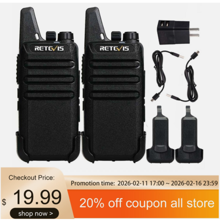 2 Pack RT22 Walkie Talkie Long Range FRS Rechargeable VOX Portable Two Way Radio $19.99