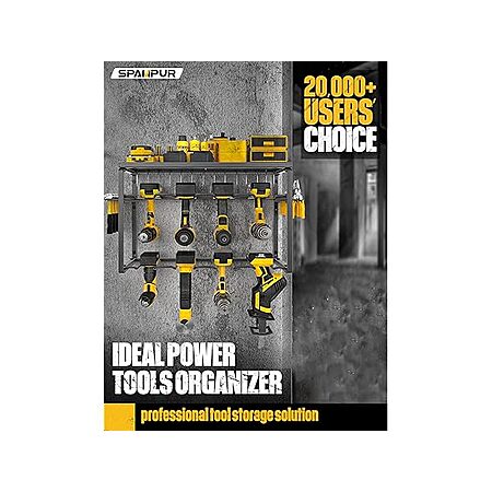 - Easy to Assemble: Our Garage storage shelves Wall Mount requires fewer screws than regular wood power tool racks. Comes with wall-mounting hardware, to DIY is easy and can be done in minutes. The Tool Organizer Wall Mount can be mounted on tile, concrete and wood walls. Simple and smooth lines make it ideal for garages, homes, workshops, sheds, backyard shops and more