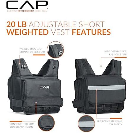 Model: CAP Barbell Unisex-Adult Barbell HHWV-CB020S Short Adjustable Weighted Vest, 20 lb., Short 20-Pound, Black
