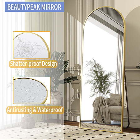 $39.99*:BEAUTYPEAK 64"x 21" Full Length Mirror Arched Standing Floor Mirror Full Body Mirror, Gold at Walmart.com