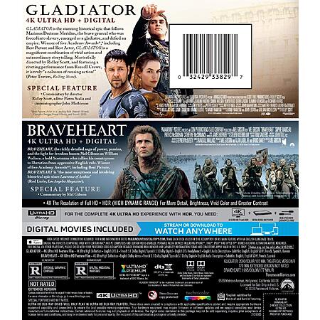 Gladiator / Braveheart 2-Movie Collection (4K/UHD + Digital $22.80 Amazon or Target.com