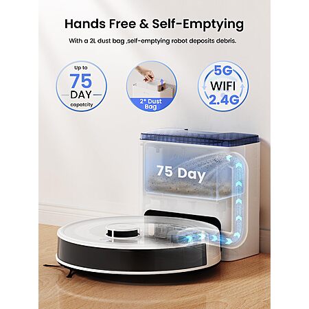 Model: Lefant M2L Plus LiDAR Robot Vacuum and Mop, 190° PSD Obstacle Avoidance, 6000Pa Strong Suction, 45-Day Capacity, Multi-Floor Mapping, 130 Min Runtime, WiFi/Alexa/APP/iWatch
